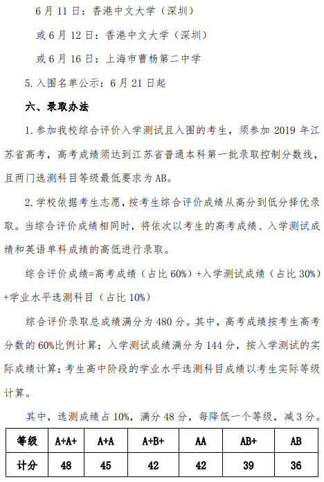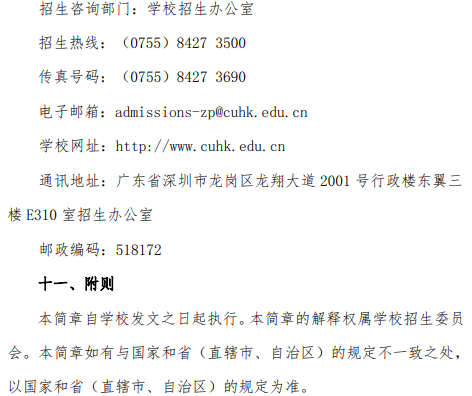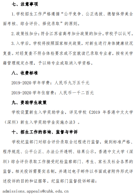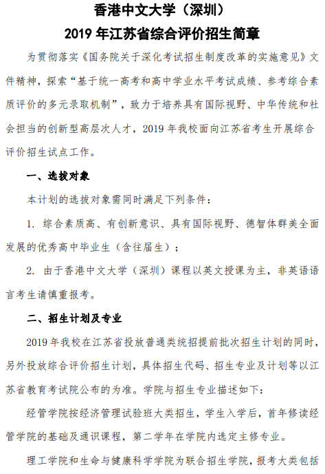香港中文大学(深圳)2019年江苏省综合评价招生简章