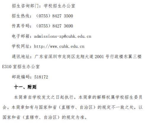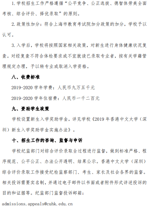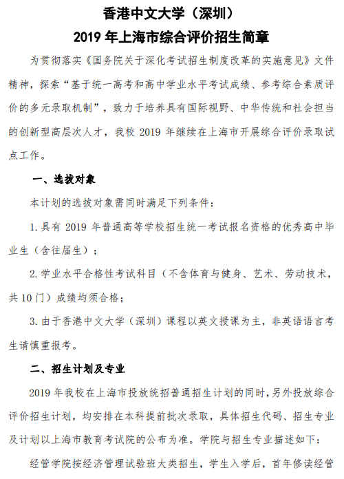 香港中文大学(深圳)2019年上海市综合评价招生简章