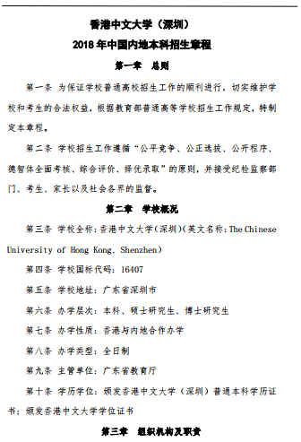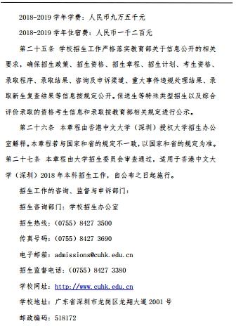 香港中文大学(深圳)2018年中国内地本科招生章程